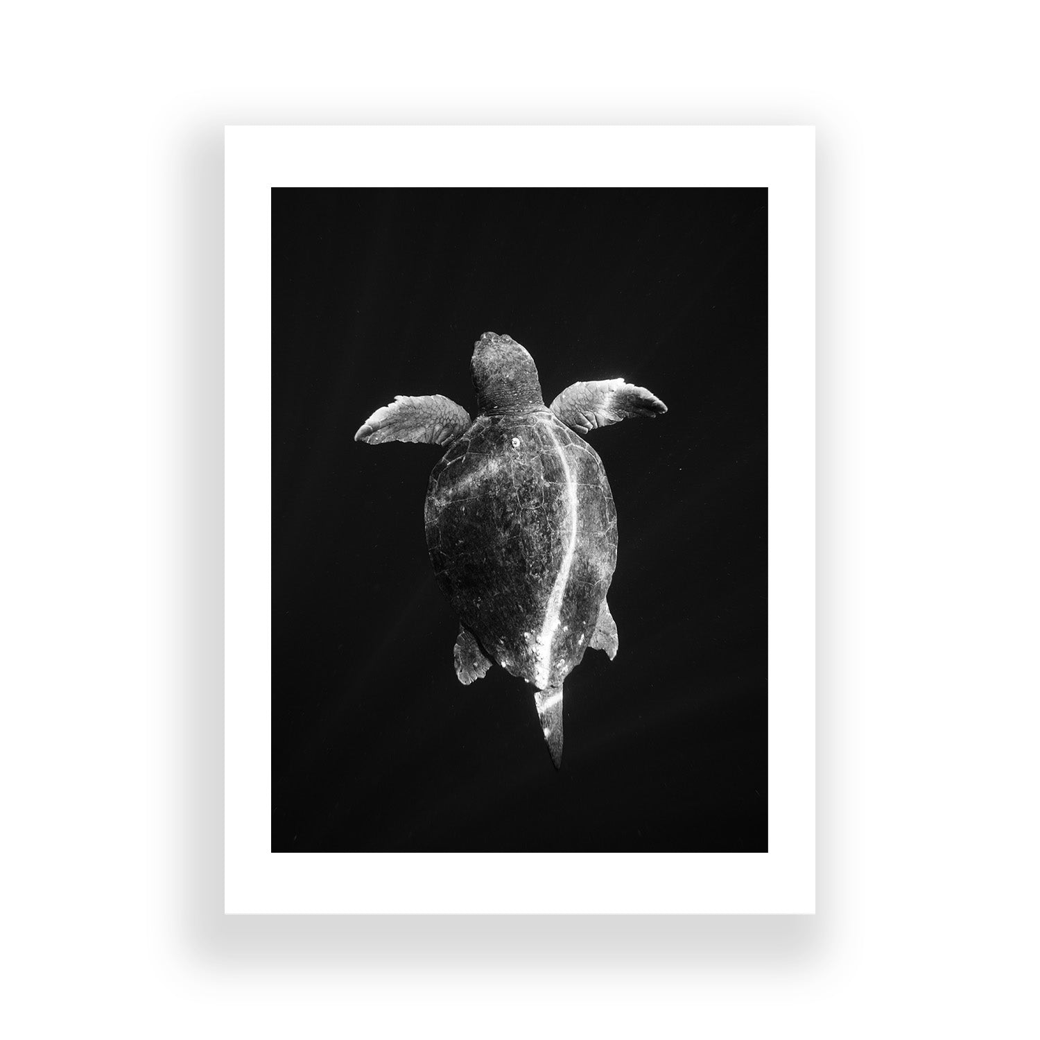 An elder Loggerhead Sea Turtle cruises through the deep waters of the Gulf Stream. Shot in Miami, Florida (2021)